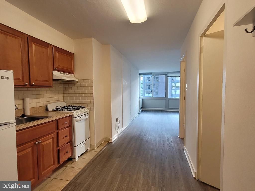 Updated studio at Hopkinson House on Washington Square! This sunny residence features an open living area with grey vinyl floors; an updated kitchen with light stained cabinetry and white appliances; a dressing area with nice closet space; and an updated full hall bathroom with a glass enclosed shower featuring white subway tilework. Residents of Hopkinson House enjoy a 24-hour doorman and on-site management. There is a seasonal rooftop pool with see-forever city views and valet parking in the building for an additional fee, subject to availability. Hopkinson House is in close proximity to many of the city's historic and cultural sites, some of the city's best shopping and dining and provides easy access to the Broad Street and Market Street office corridors, as well as 676, 95, Amtrak's 30th Street Station and the Philadelphia International Airport.